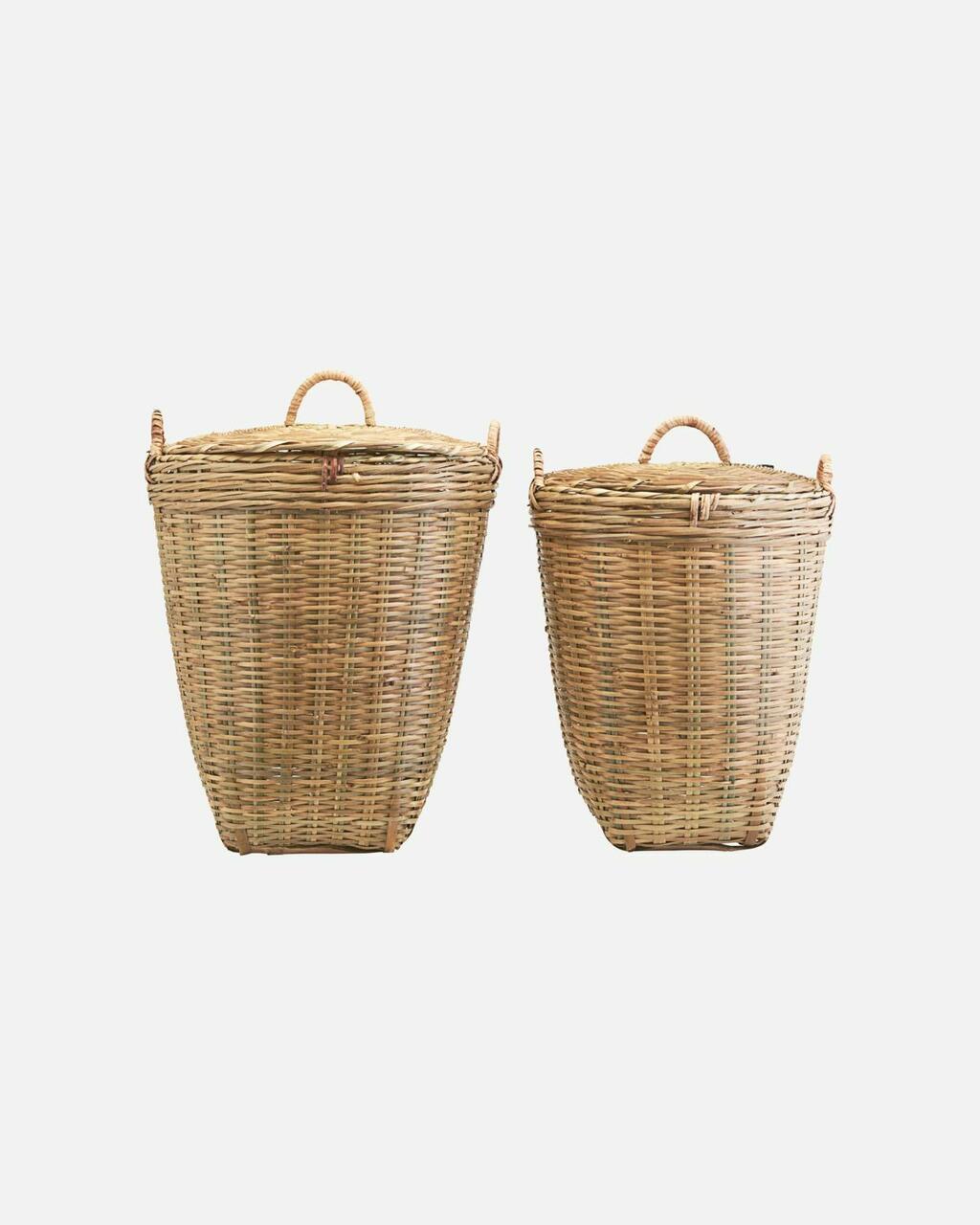 Kas vajate oma koju praktilist ja ilusat kaanega korvi? Tradition korvid on selleks suurepärane valik, saad komplekti kahest erinevas suuruses korvist – mõlemad kvaliteetsest bambusest. Ühe korvi kõrgus on 58 cm ja läbimõõt 45 cm, teise korvi kõrgus on 48 cm ja läbimõõt 40 cm. See on ideaalne lahendus pesu hoidmiseks, samas lisab sisekujundusele hubasust. Kasutage korve vannitoas, magamistoas või majapidamisruumis – kuhu iganes te need asetate, on need teie kodu sisekujunduses kaunistuseks.