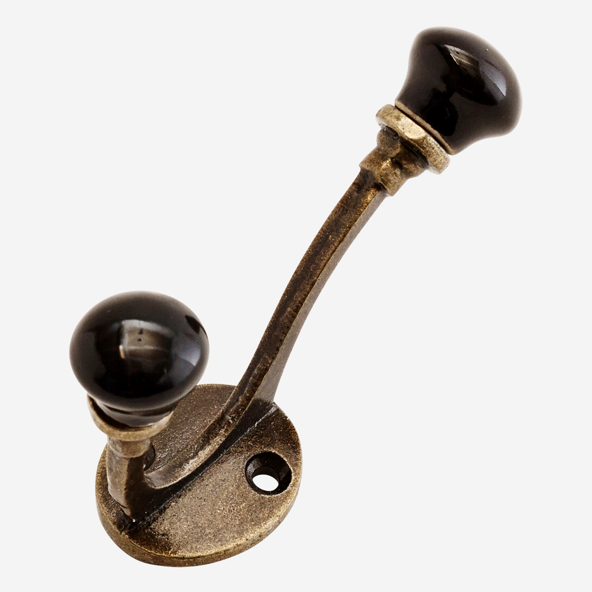 Metallist antiikse viimistluse ja portselanist mustade nuppudega nagi esikusse või garderoobi, brändilt Madam Stoltz.