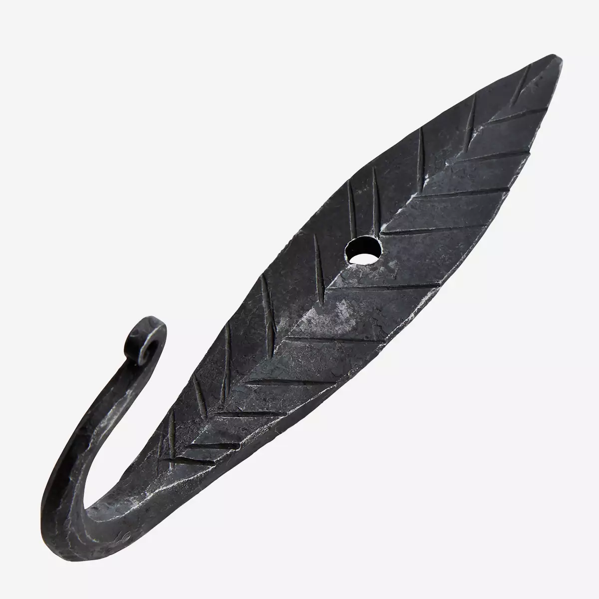 Käsitööna valmistatud metallist lehe kujuline dekoratiivne nagi esikusse või garderoobi, brändilt Madam Stoltz. Kruvi komplektis.
