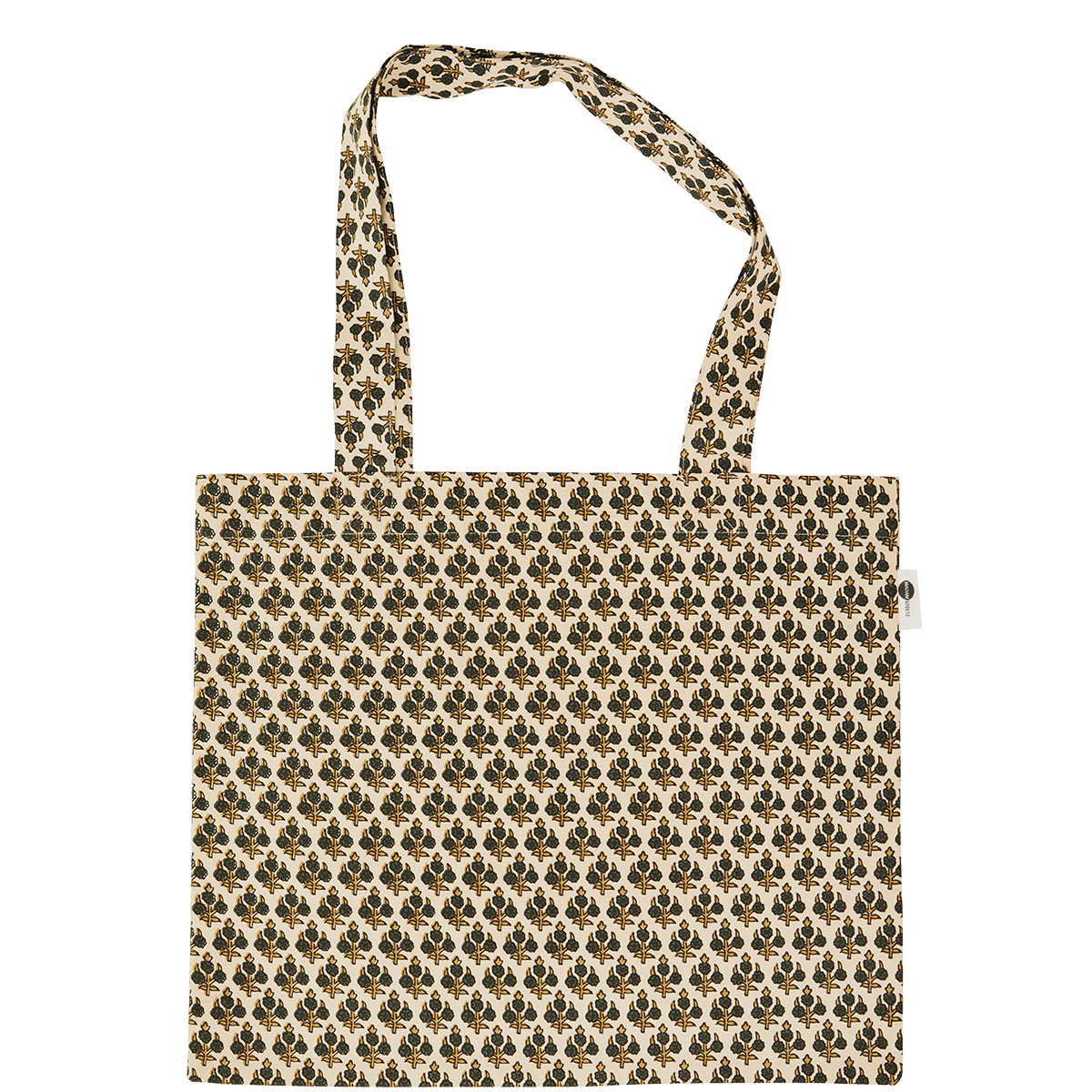 Väga mõnus puuvillane kott poodi, turule või randa. Traditsioonilises India plokk-print tehnikas trükitud taimemuster lisab kotile isikupära, käsitsi pestav või õrna pesuprogrammiga 30 kraadi juures. Suurepärane ka kingituse kotiks.