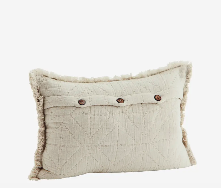 Väike, pehme tepitud padjakate pestud puuvillast. Kattel on ühel küljel nähtavad nööbid, mida saab kasutada dekoratiivse osana padja ilmest.