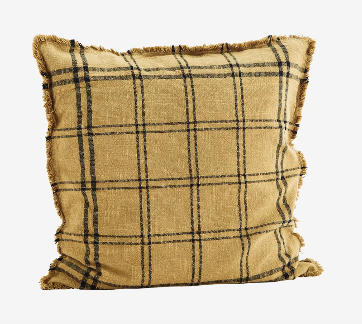 Sinepikollane padjakate klassikaliselt ruudulise mustriga. Nägus kivipestud puuvill on materjalina väga pehme ja hästi hooldatav. Soe värvitoon lisab ruumi hubasust. Pesta 30 kraadi juures.