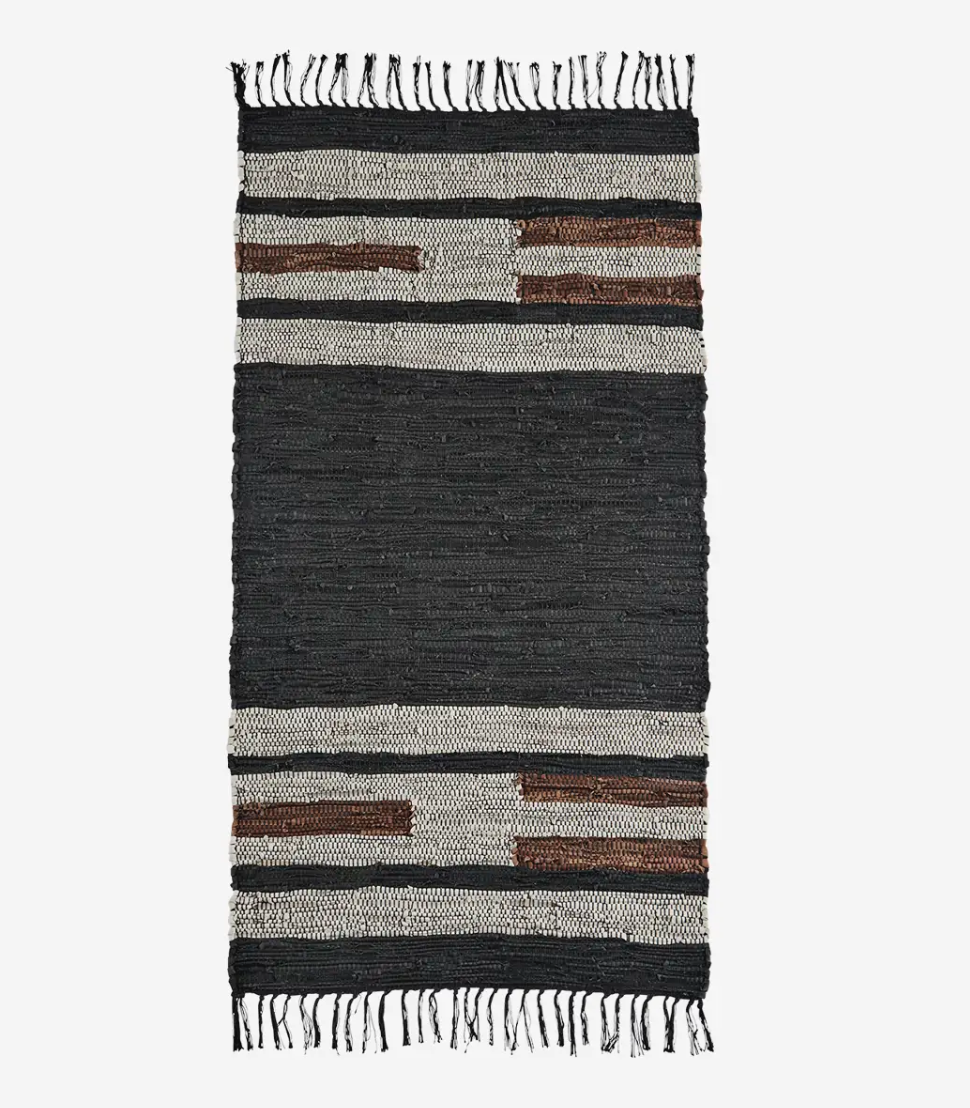 Nahast punutud vaip, 70x140cm, must/hall/naturaalne - 39€