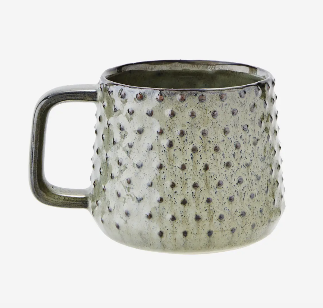 Keraamiline pruuni/rohekat tooni tass Madam Stoltzilt. Kauni täpilise mustriga pind, mis kaunistab iga lauda!