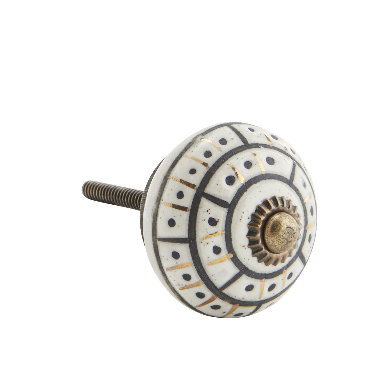 Käsitööna valminu keraamiline kapinupp Madam Stoltzilt. Põnev aasiapärane muster.