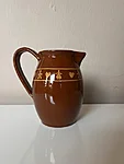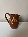 Vahva mustriga keraamiline pruun kannuke. Serveeri sellest oma