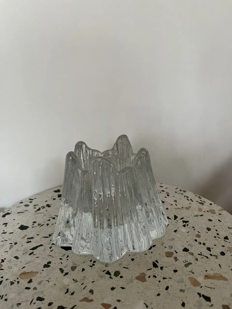 Vintage vulkaani kujuline küünlahoidja. Sobib ideaalselt teeküünla jaoks. Kaunis jääklaasi efekt Rootsi legendaarselt klaasitootjalt Nybro. Stuudios 1 tk.