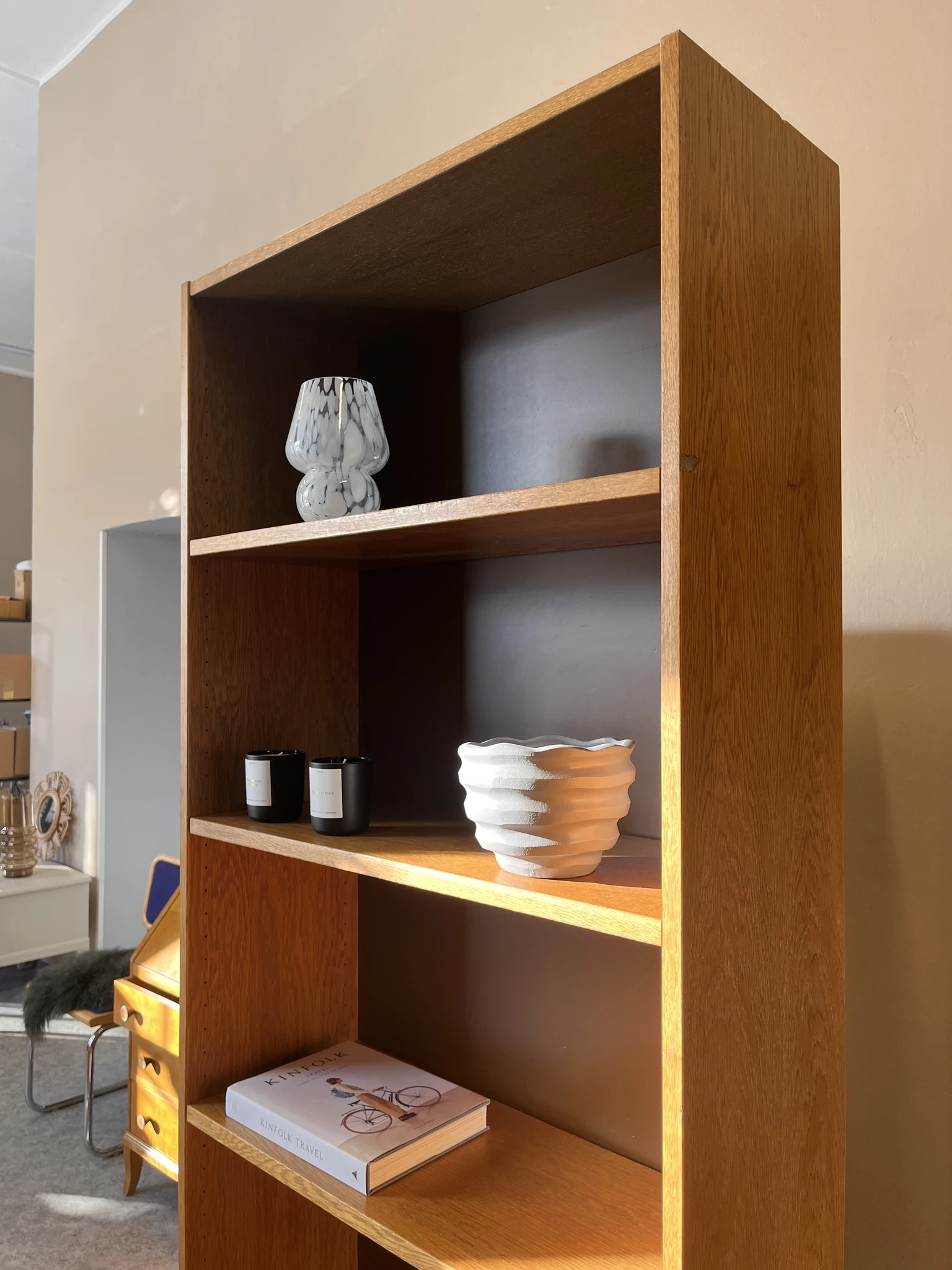Tamme tooni ilus raamaturiiul on kõrge ja mahukas, mahutades su raamatutagavarad või pakkudes silmailu muude dekoratiivsete esemete hoiustamisel. Väga kihvt ja heas korras, üksikud kulumisjäljed ning väike defekt küljel (paremal üleval). Tule stuudiosse vaatama.