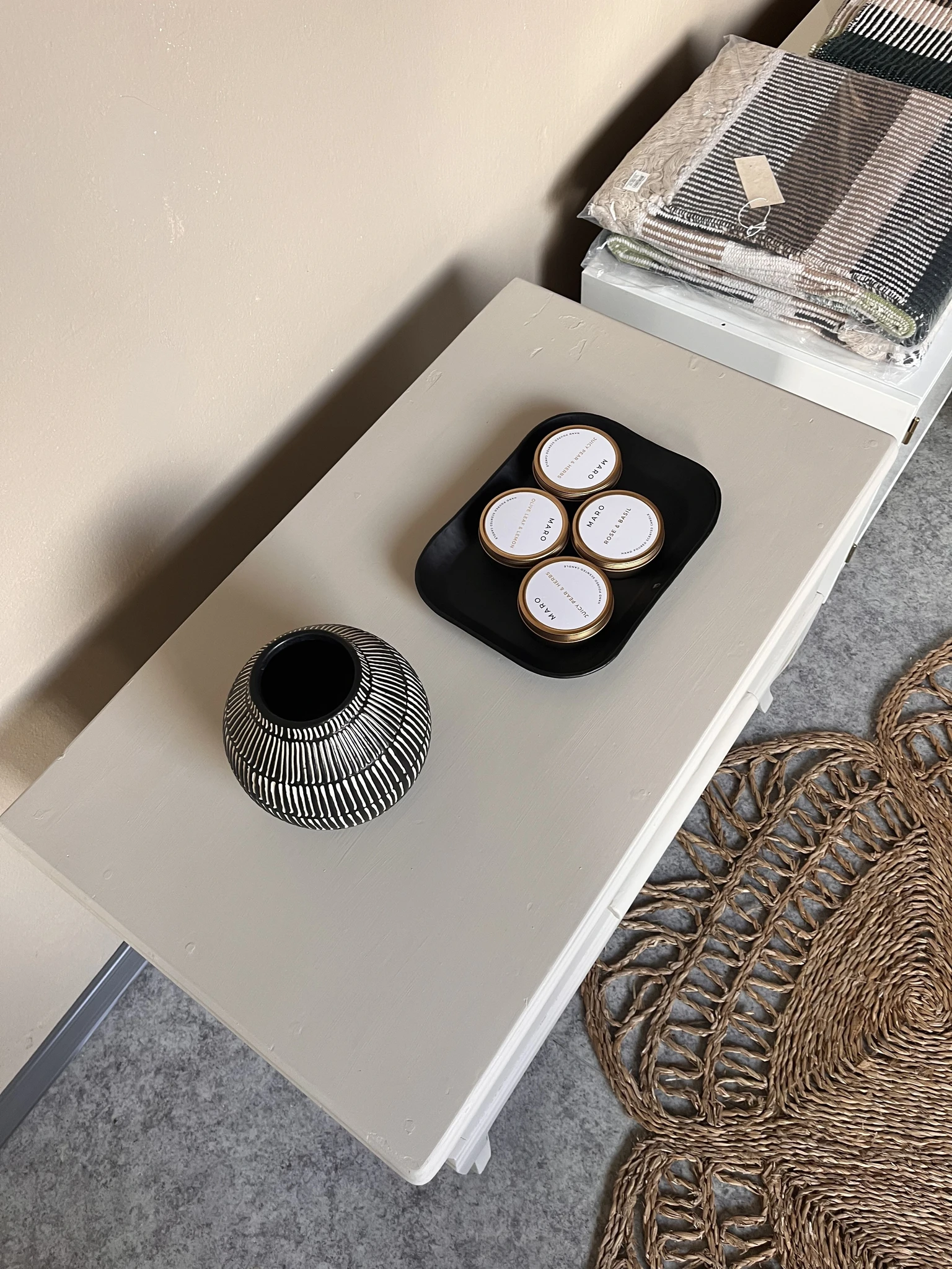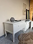 Taaskasutusest pärit vintage kummut sai uue beezika värvikihi. Kauni kujuga kummut on praktiline asjade hoiustamiseks ja sobib hästi ka esiku pingiks. Tugev täispuidust kummut on rustikaalne, kohati esineb kasutusjälgi ja materjali erisusi. Sahtel seest värvitud nat. valgeks.