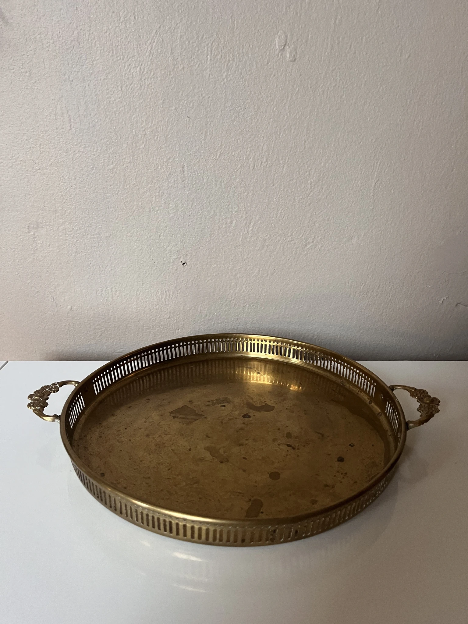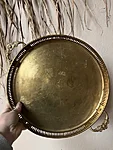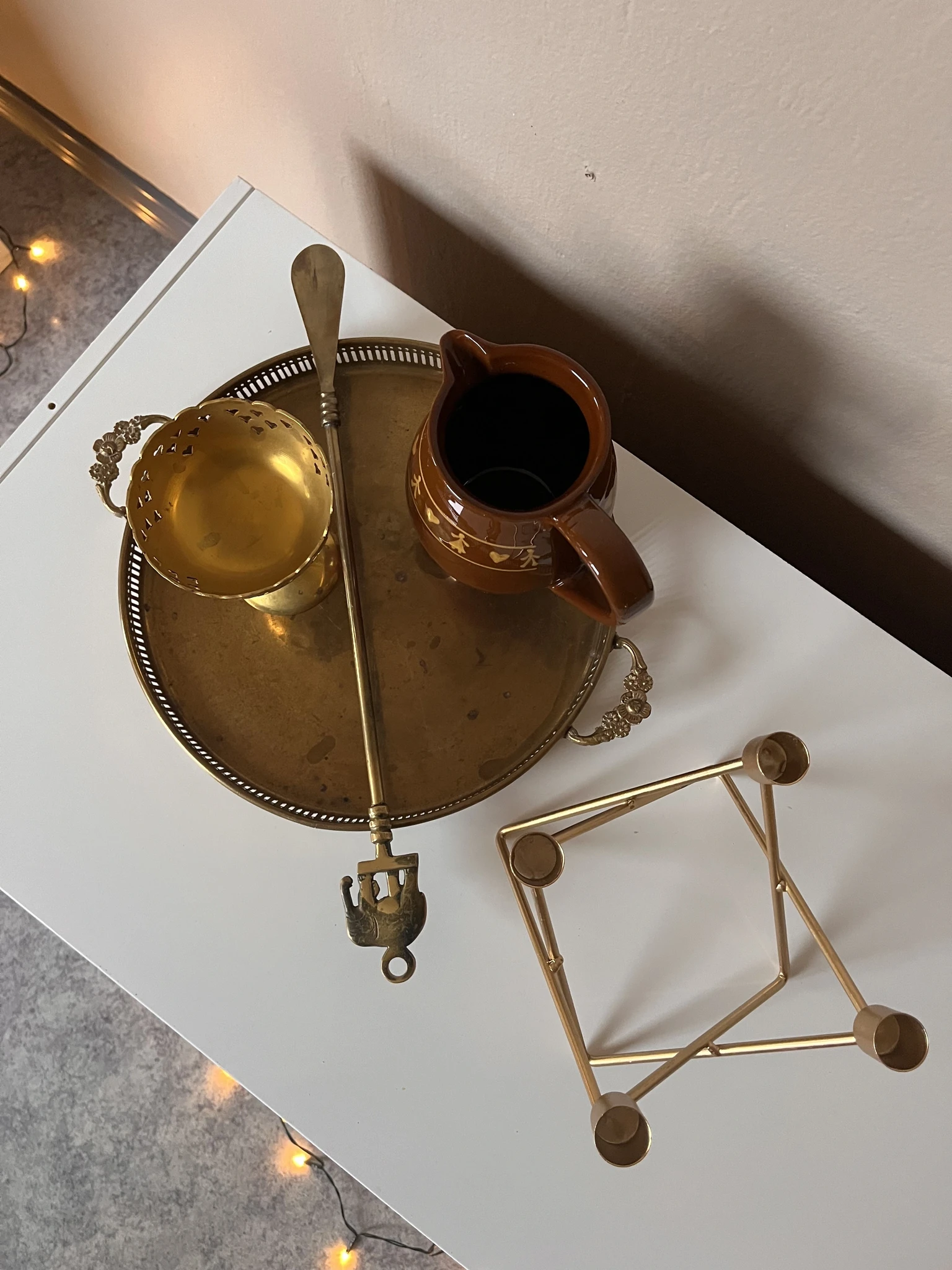 Kauni ornamentikaga kaunistatud vintage kandik, messing ja paatina lisavad vanale asjale väärikust.