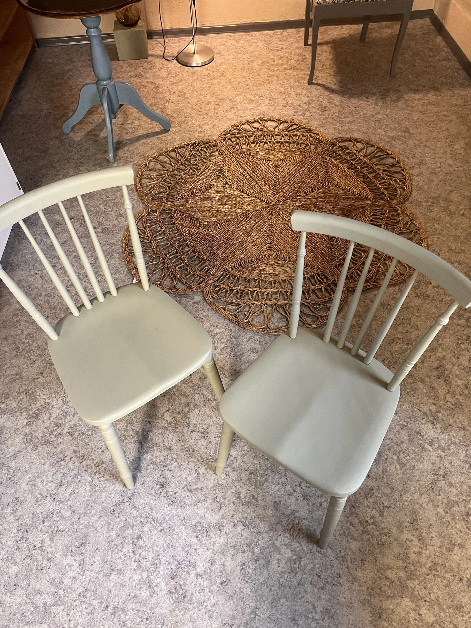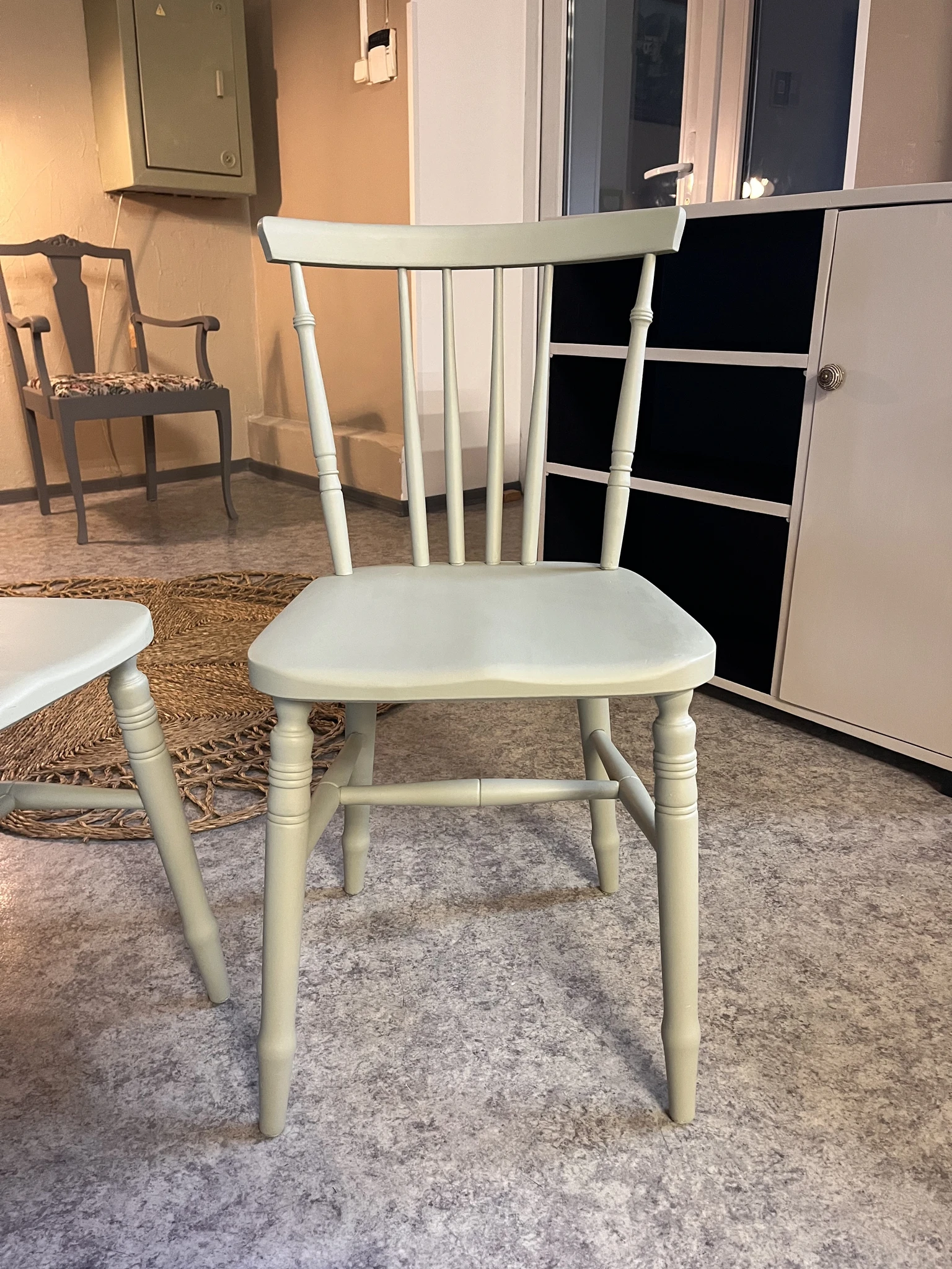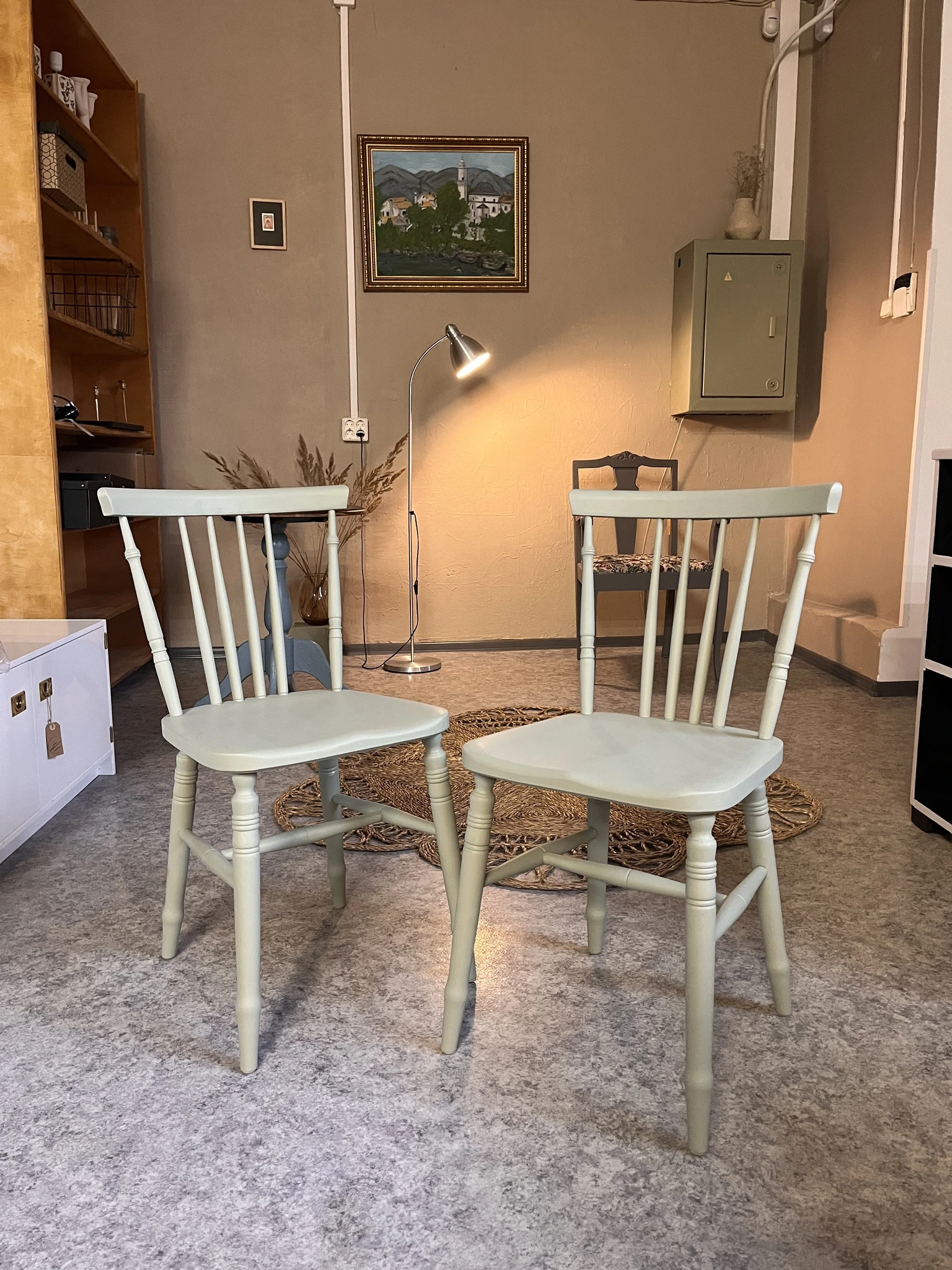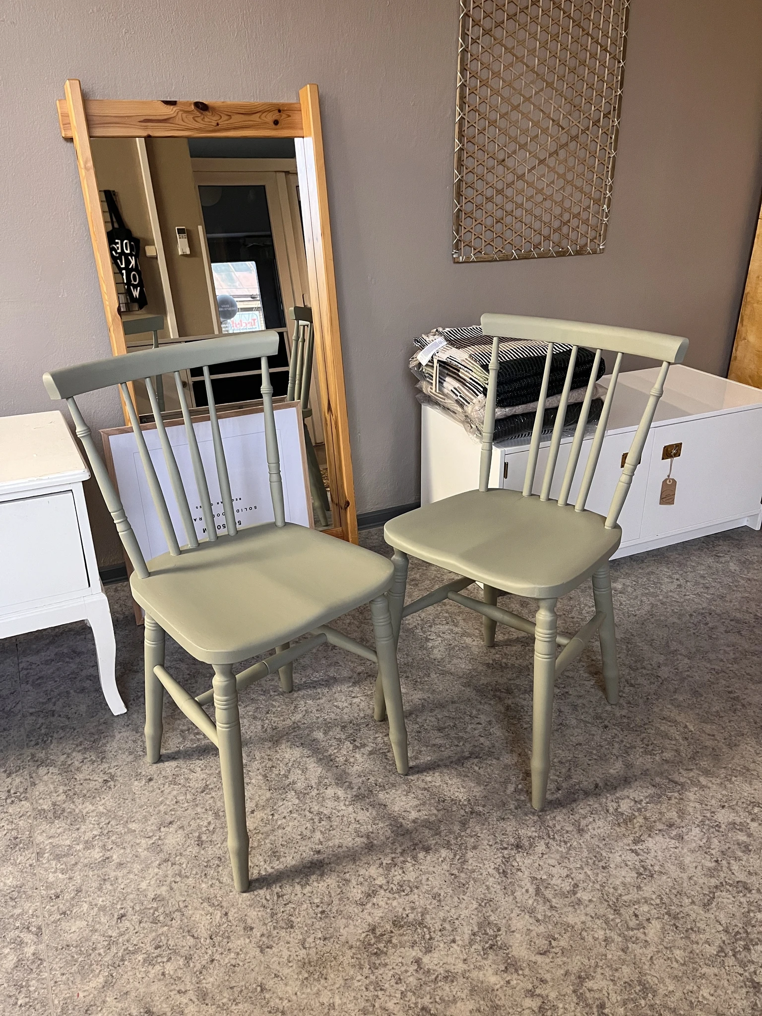 Rohekat tooni värvitud vintage pulgatoolid. Kauni kujuga ja lisavad iseloomu igas interjööris. Stuudios olemas 2 tk, ühe hind 75€. Tule vaatama.
