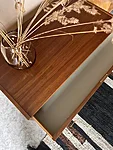 Tiikpuu spooniga kummut on nelja sahtliga ja originaal viimistlusega. Mõnes kohas spooniparandused sarnast tooni pahtliga (küljel alumine serv). Kahel sahtlil spoon paigaldatud teises suunas, et lisada huvitavat nüanssi. Kaunid käepidemed on messing tooni metallist. Stiilne mööbliese lisab igasse ruumi omanäolisust.