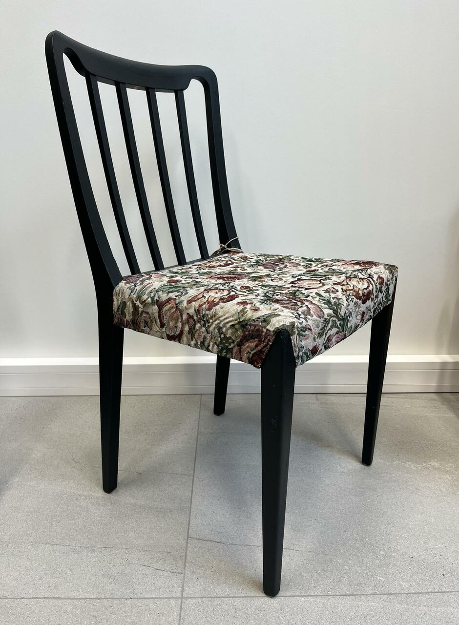 Must pulkadega tool, istmeosa kaetud lillemustrilise kangaga.