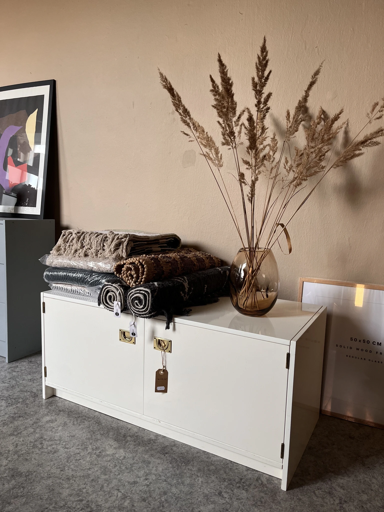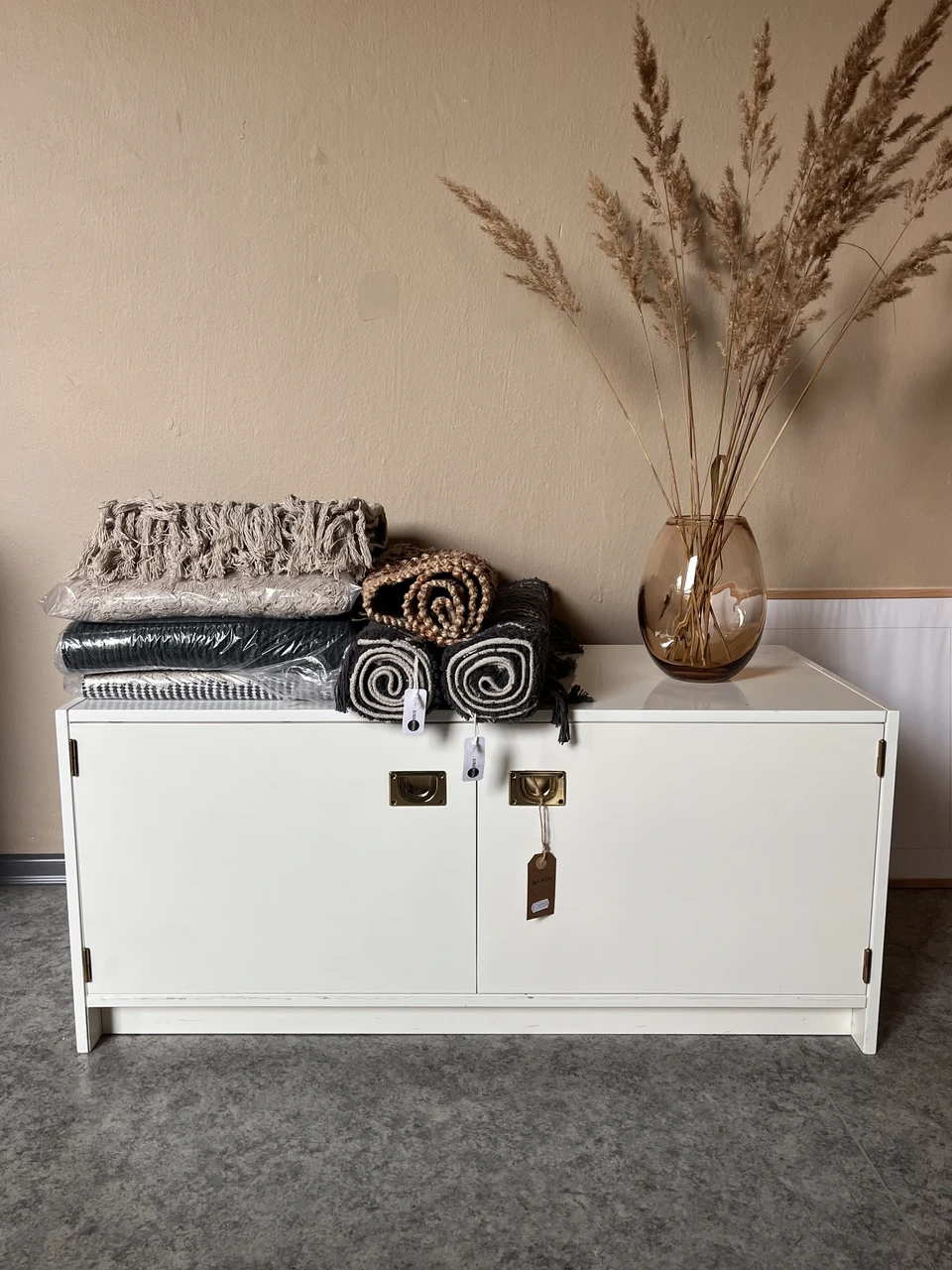 Kõrgläikega valge kapp on pärit 70ndatest, Rootsist.