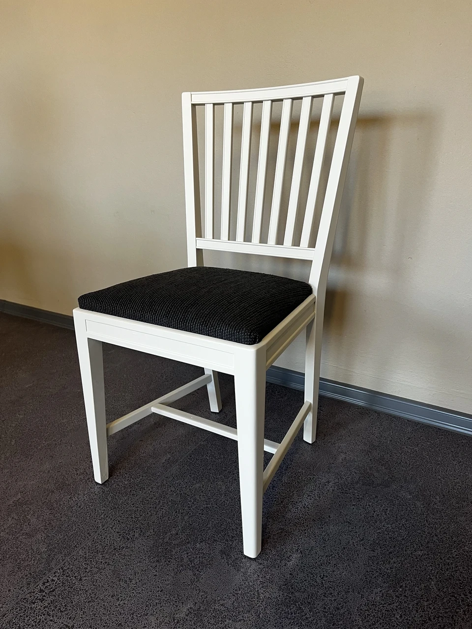 Valge värvitud tool tumeda kangaga - 80€