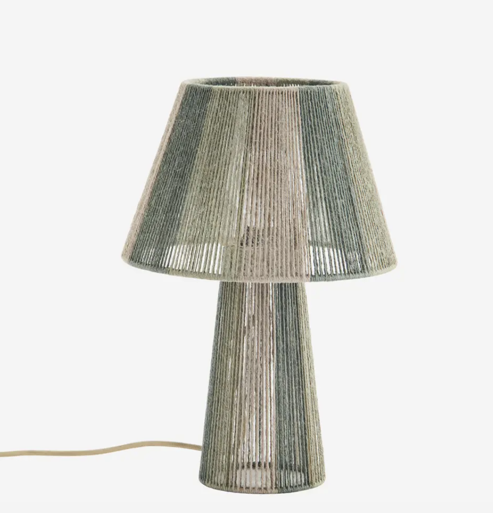 Roheline jute nöörist laualamp annab ruumi maheda valguse ja on põneva tekstuuriga. Valgusti on metallist karkassil. E27 sokkel, 2,5 m kangasjuhe, mis on kaunist kuldset beezi tooni.