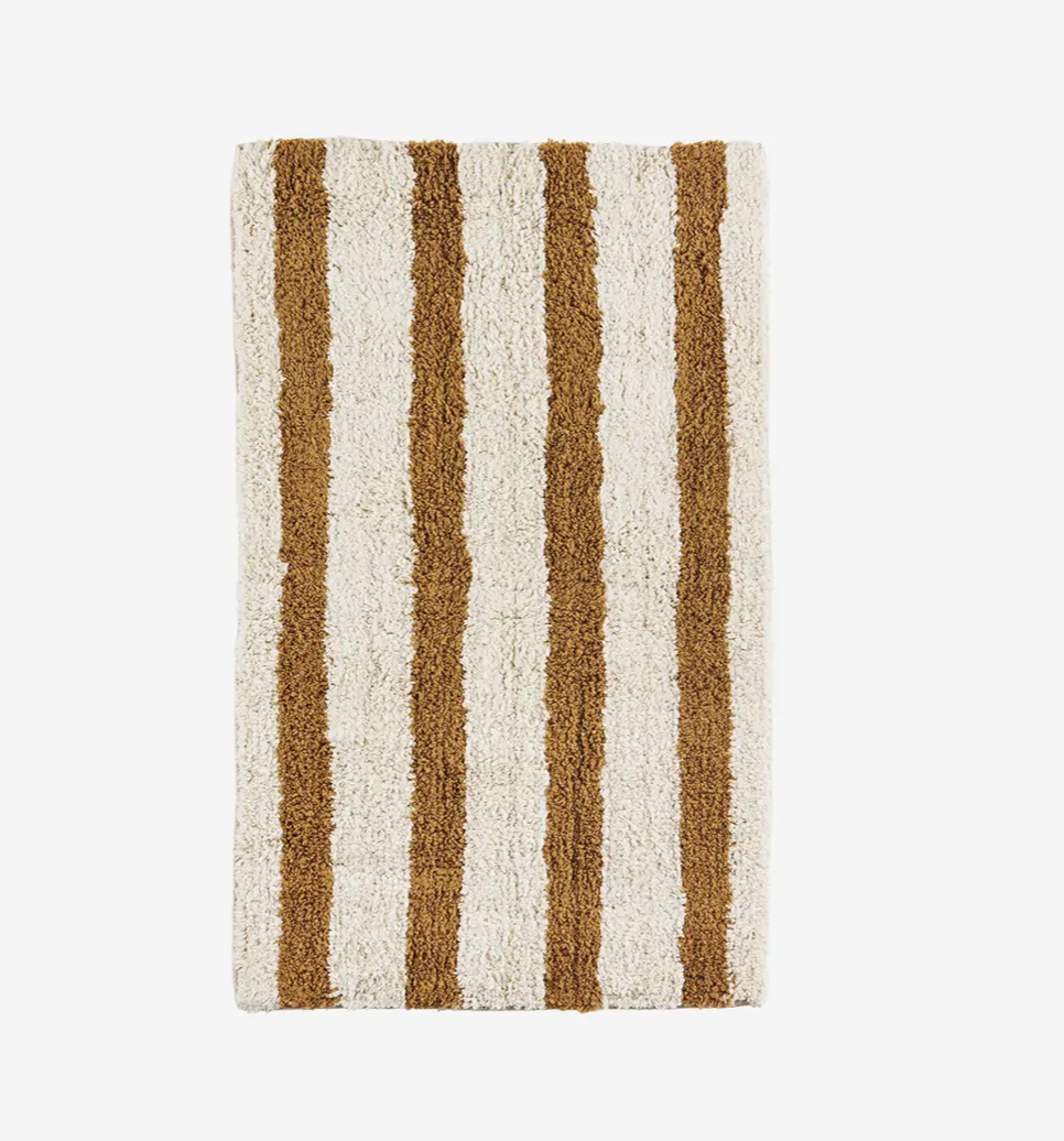 Puuvillane ja triibulise mustriga vannitoavaip. Toob mõnusa boho-vaibi ka vannituppa. Lihtne hooldada, sest on õrnpesuprogrmmiga masinas pestav 30 kraadi juures. Pahupoolel on latekskummine põhi, mis hoiab vaiba omal kohal. Sobiv ka esikusse või magamistuppa, pehme ja tupsuline pind.