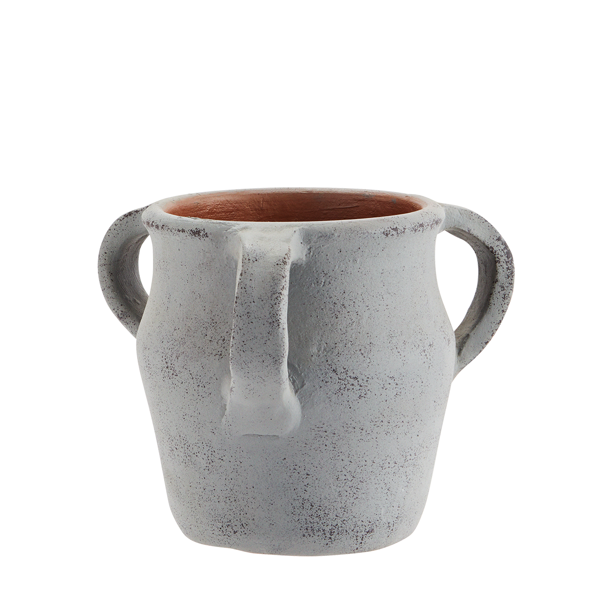 Madam Stoltz terracotta lillepott on ilusat kivihalli tooni ning põnevalt vormitud 3 sangaga. Suurepärane ka köögitarvete hoidjana või maitsetaimedele, soovitame kaitsta niiskuse eest. Puhastada niiske lapiga. Käsitööna valmistatud esemed võivad erineda.