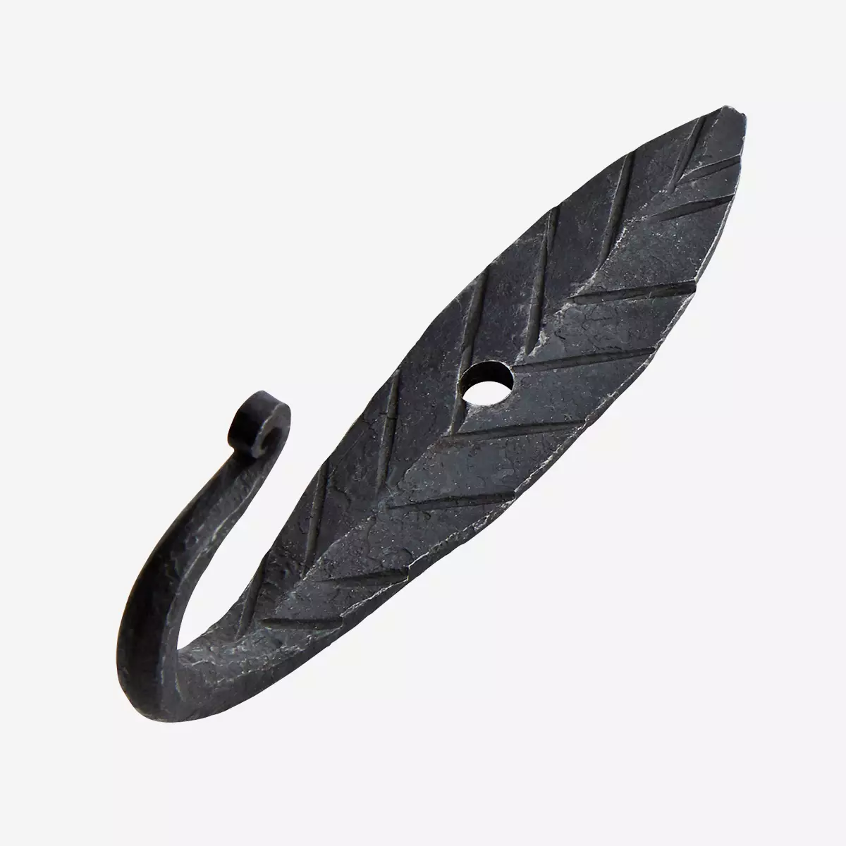Käsitööna valmistatud metallist lehe kujuline dekoratiivne nagi esikusse või garderoobi, brändilt Madam Stoltz. Kruvi komplektis.
