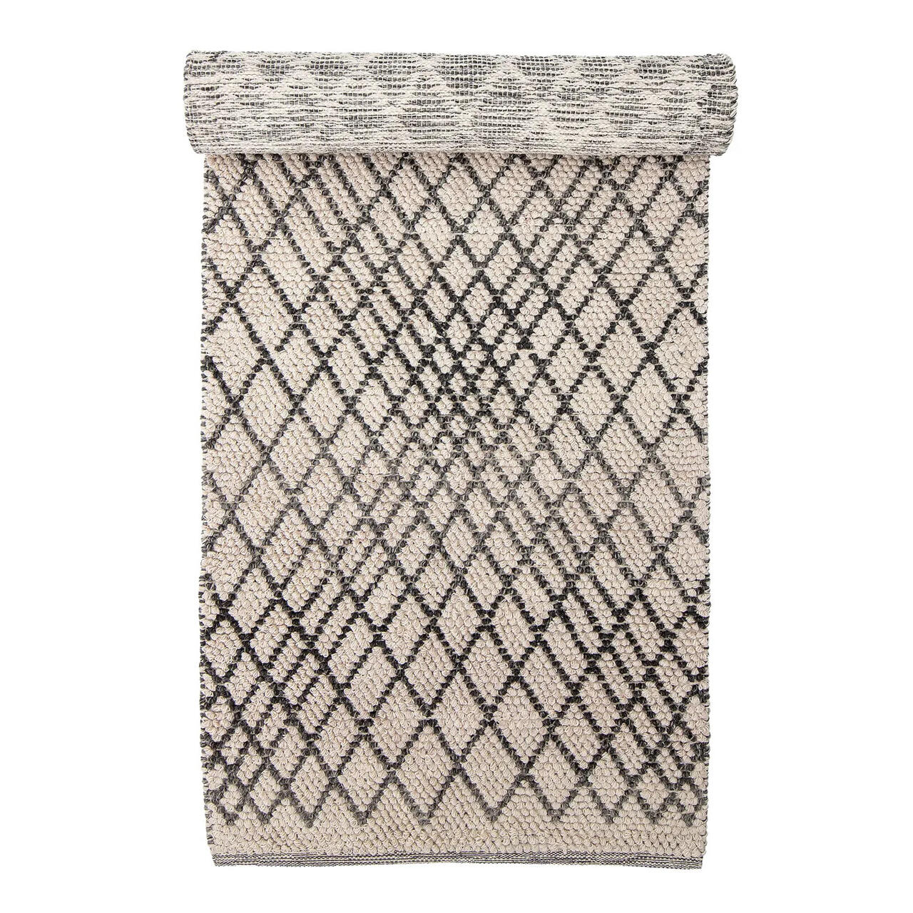 Kaya 80 x 250 cm villane vaip Bloomingville'lt on käsitsi kootud pikk vaip, millel on graafiline ruuduline muster ja tihe paks kude. Pehme vaip on mugav jalgade all ja sobib ideaalselt piklikusse esikusse, köögimööbli ette või pikemasse koridori.