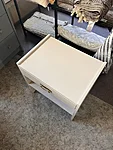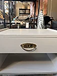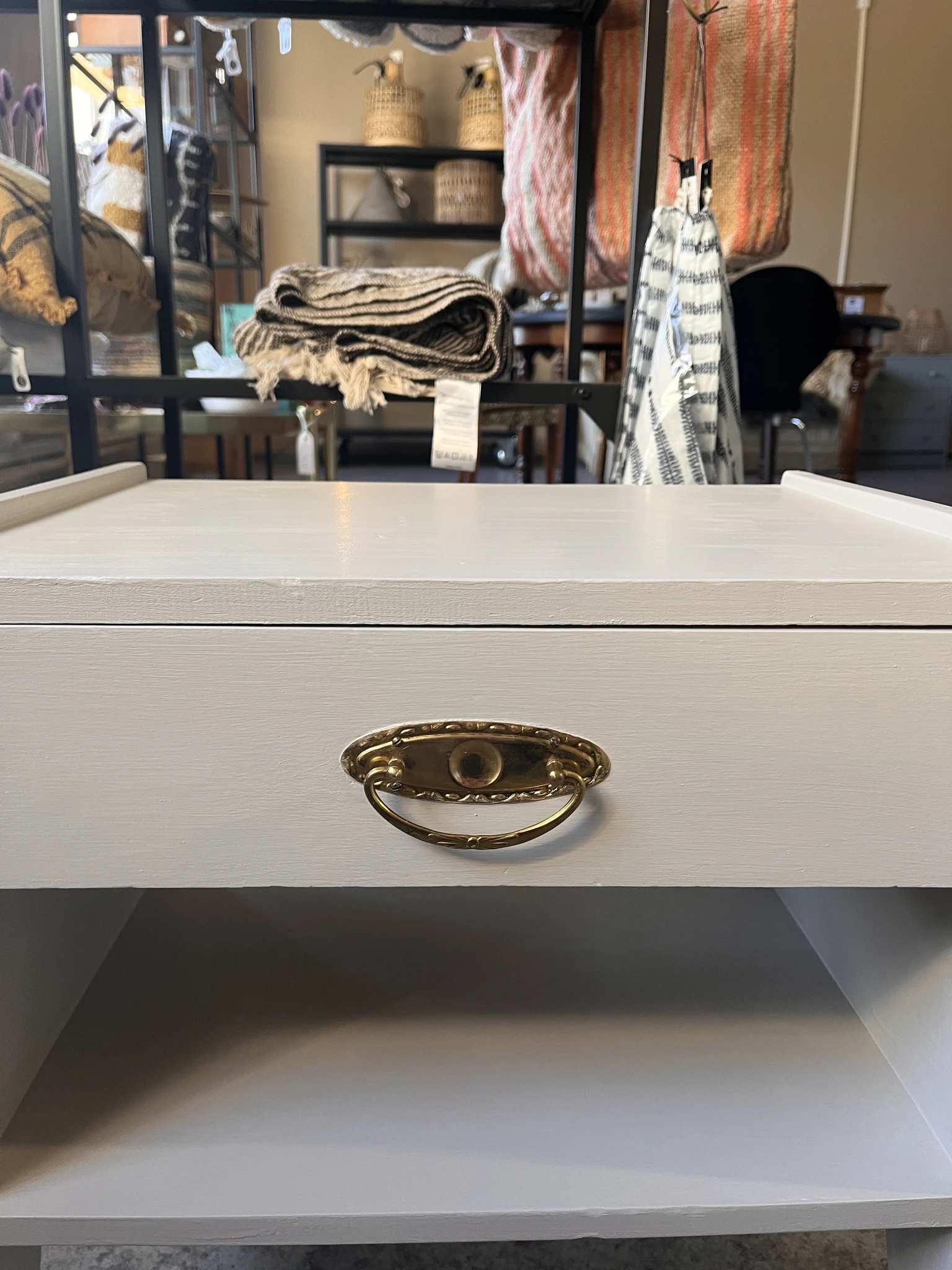 Kreemikat tooni hele puidust öökapp. Sellel on külgedel põnevad kaared ja üks sahtel armsa vanaaegse käepidemega. Öökappe olemas stuudios 1 tk.