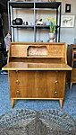 Kaunis vintage sekretär-kummut on kolme suure sahtliga, sees on lisaks neli pisemat sahtlit. Viimistletud mööblivahaga, puhastatud ja korrastatud. Lauaplaat on avatav ja annab lisafunktsioonina ka kirjutuslaua võimaluse. Hea mahukas panipaik, esinevad mõningad kasutusjäljed ja spooni defekt. Võti olemas.