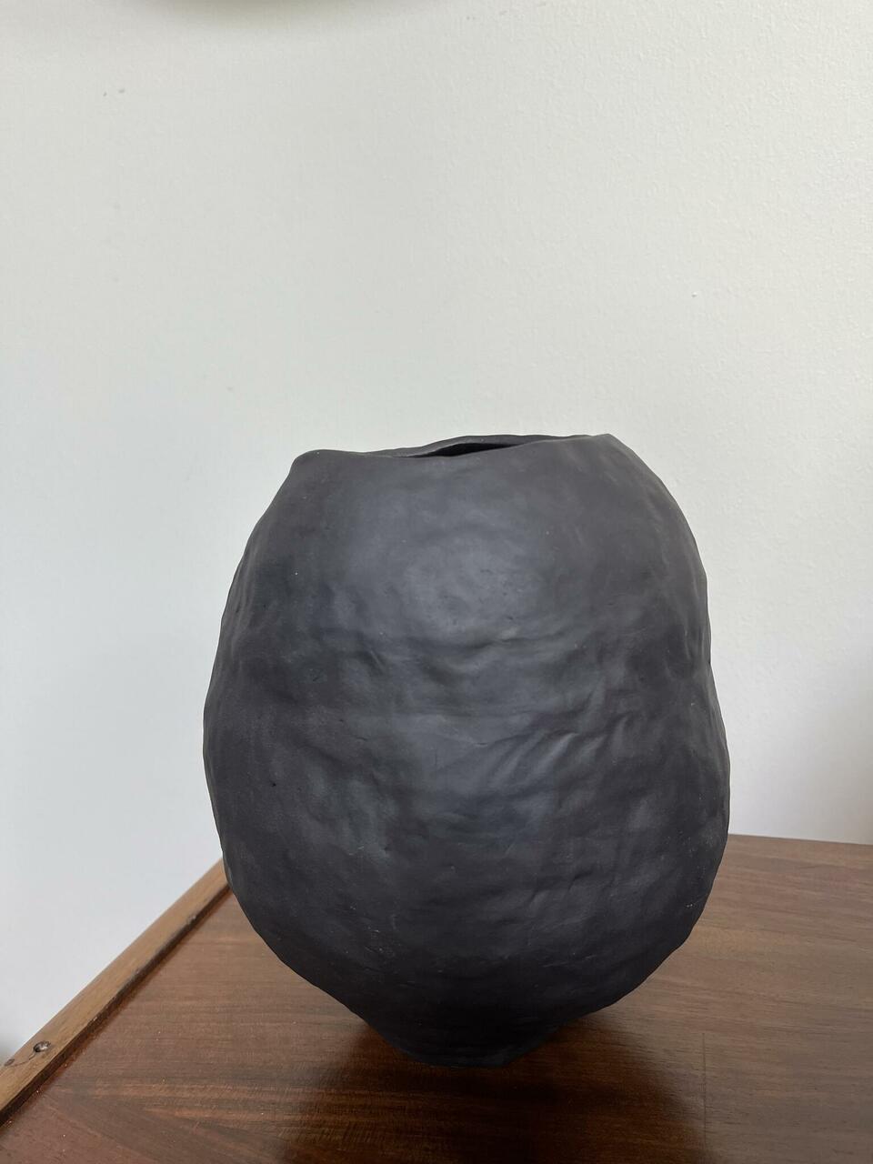 Mustast savist kasitööna valmistatud suurem orgaanilise kujuga vaas. Seest glasuuritud ja veekindel. Kõik tooted on omanäolised ning võivad veidi erineda.