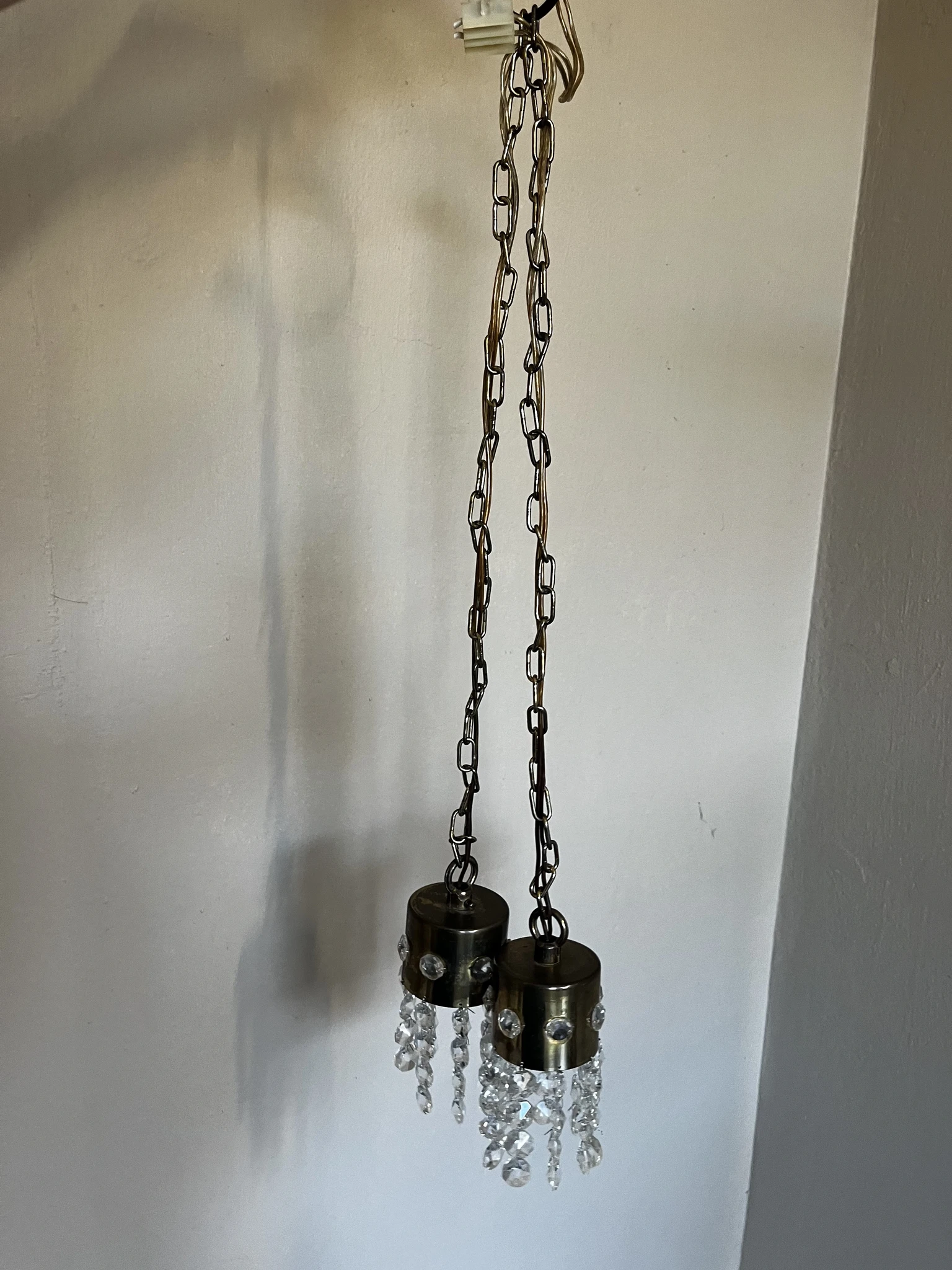Stiilsed messing valgustid kristallidega, 2 tk komplektis. Lambipirn E14, ketiga juhtmeosa pikkus on 46 cm ning lambid on elektriku poolt üle kontrollitud.