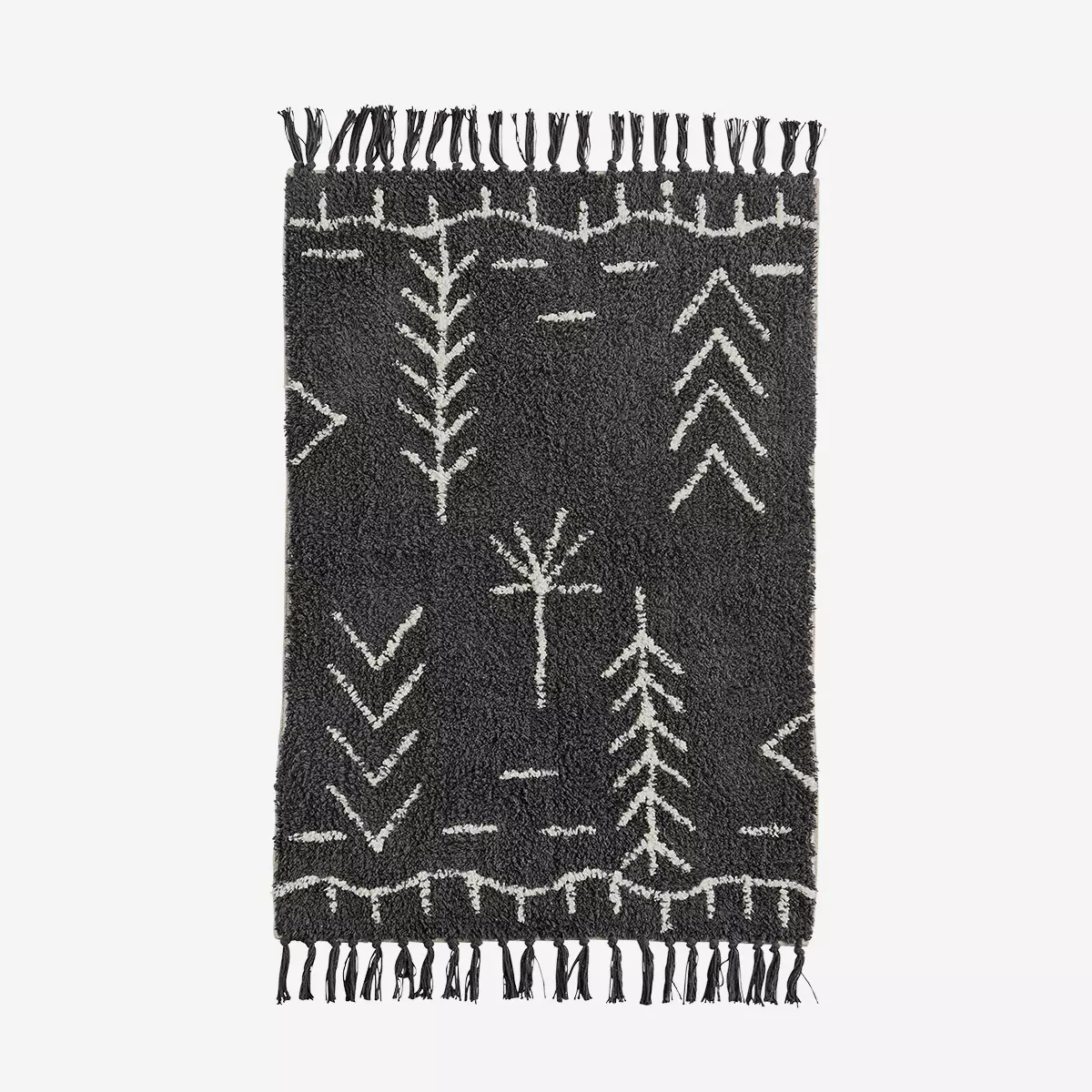 Puuvillane vannitoavaip, narmastega 60x90cm, tumehall/elevandiluu