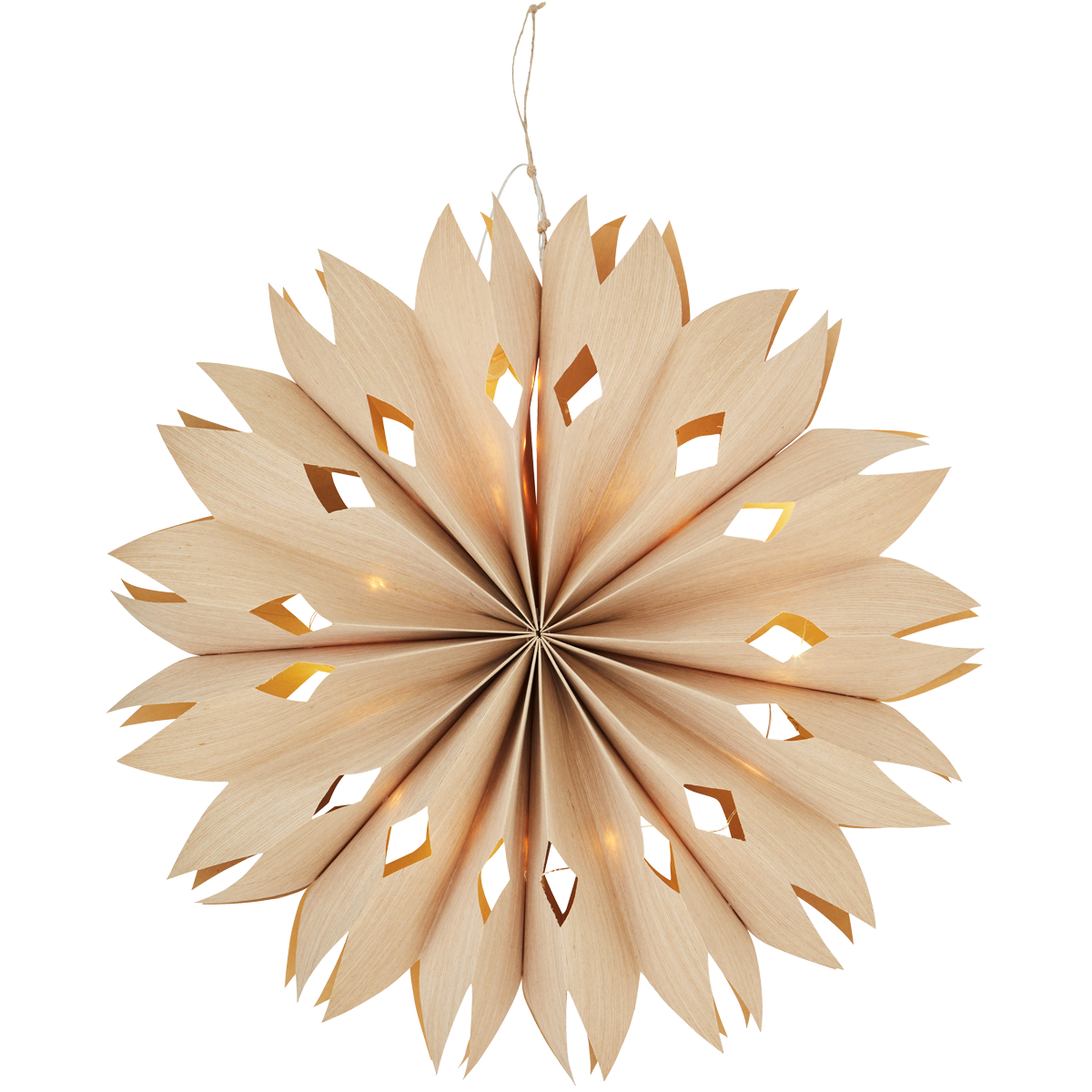 Stiilne ja meeleolukas tuledega vineerist täht Madam Stoltzilt. Õhulise vormiga ning naturaalsest materjalist valmistatud. Väga kaunis nii aknal kui interjööris, patareidega (CR2032) 15 x LED tuled kuuluvad komplekti.
